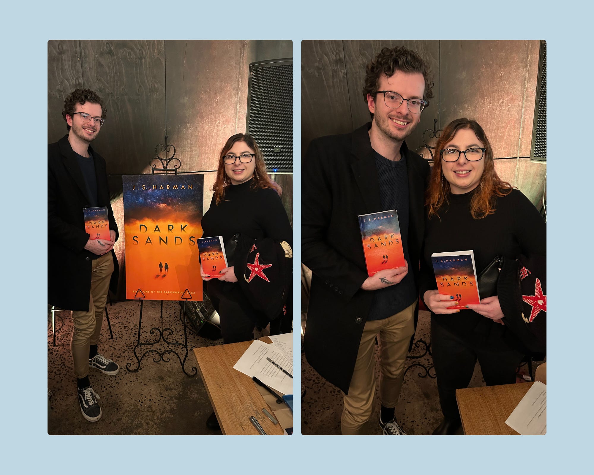 I love supporting writers at their launches where I can (peep cute photos of me and J.S. Harman at his recent launch of Dark Sands), and share and support other writers as often as possible through my socials and newsletter.